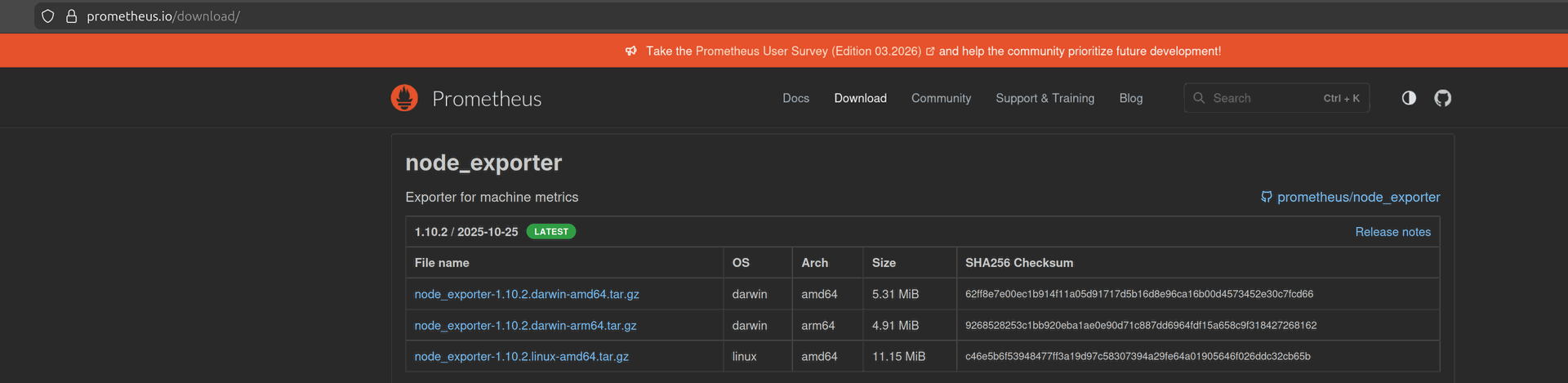 - wget https://github.com/prometheus/node_exporter/releases/download/v1.10.2/node_exporter-1.10.2.linux-amd64.tar.gz