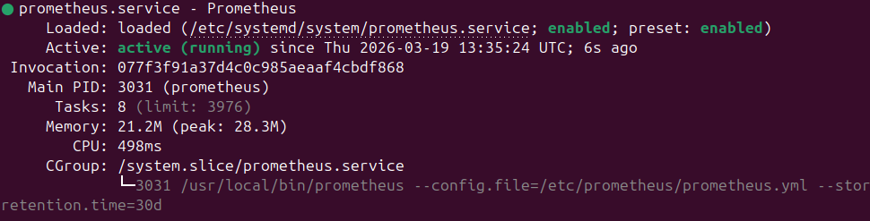 - sudo systemctl status prometheus