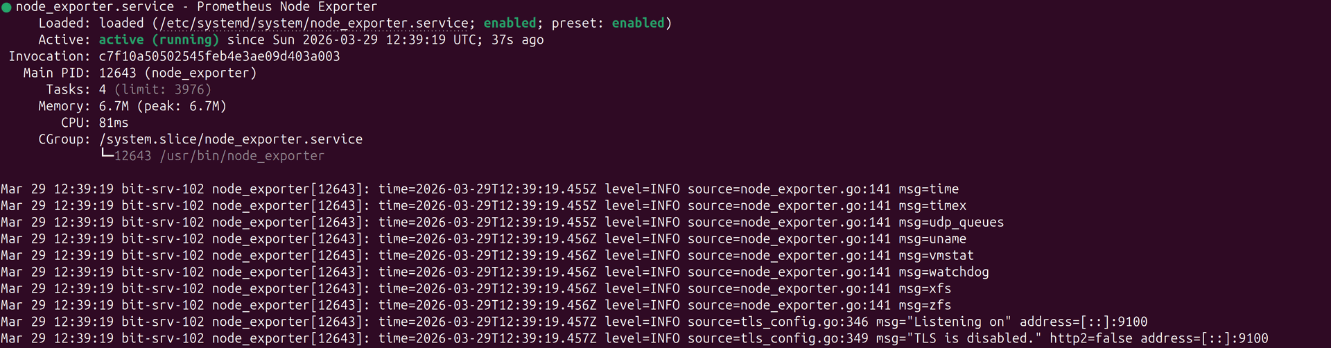 - systemctl status node_exporter